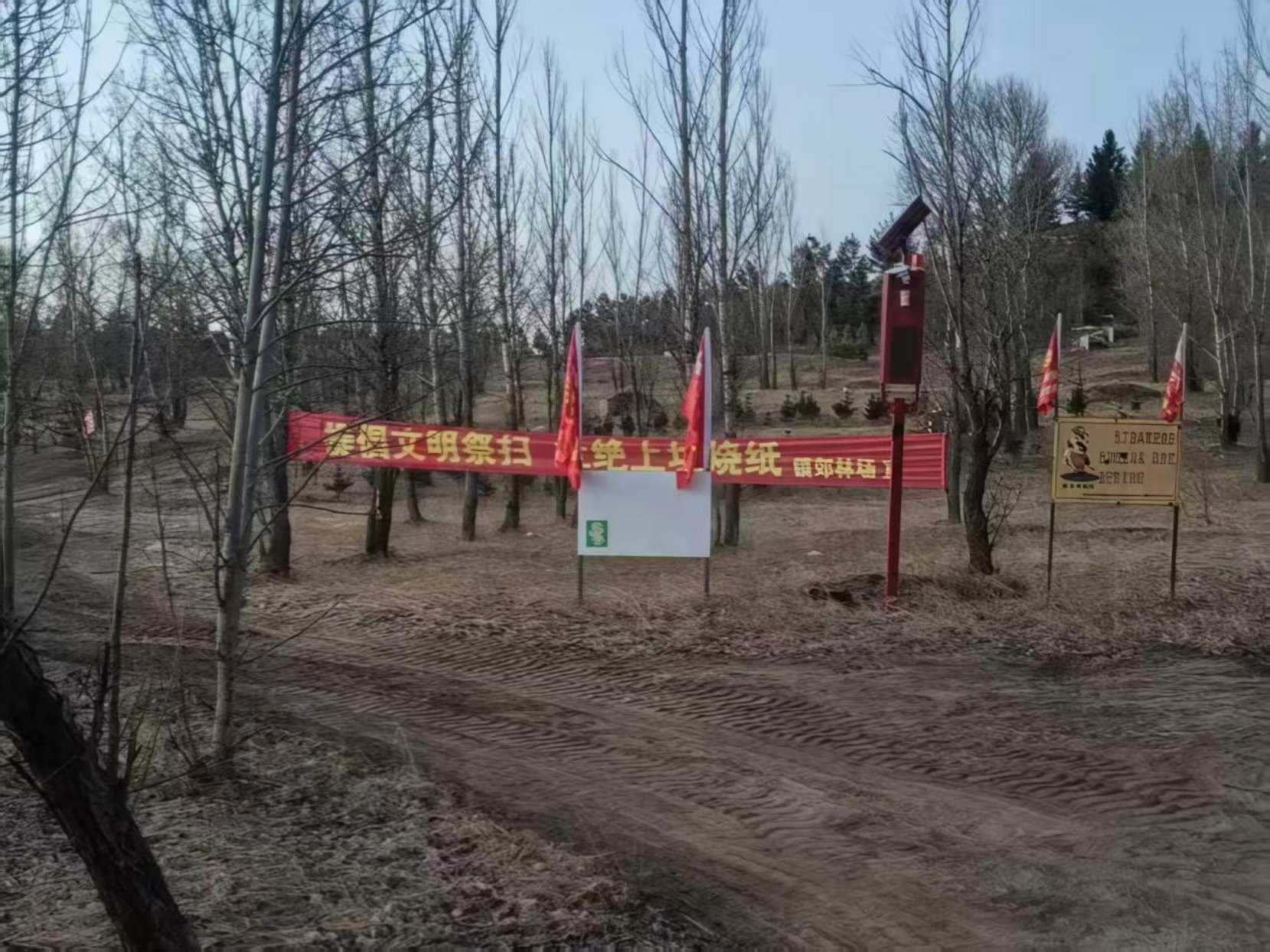线上线下联动发力,扩大宣传覆盖面。线下在主干道路、林缘坟区悬挂防火横幅223余条,张贴禁火通告800余份,布设防火警示旗1200余面;出动流动宣传车120车次全天候巡回播报。依托镇村微信群、政务公众号等线上平台,累计推送防火提醒、典型案例5000余条次,营造全民防火、人人尽责的浓厚氛围。