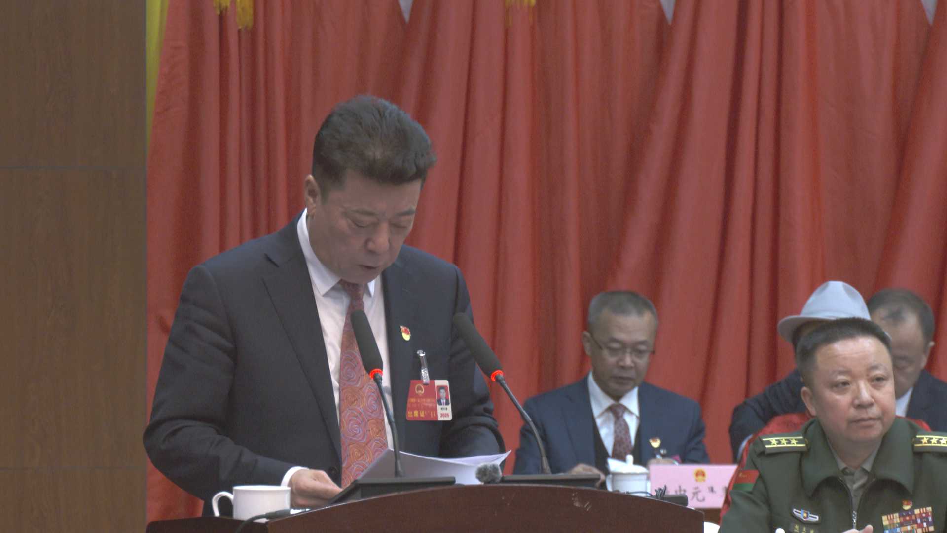 旗人大常委会主任胡日查代表旗十八届人大常委会向大会报告工作。
