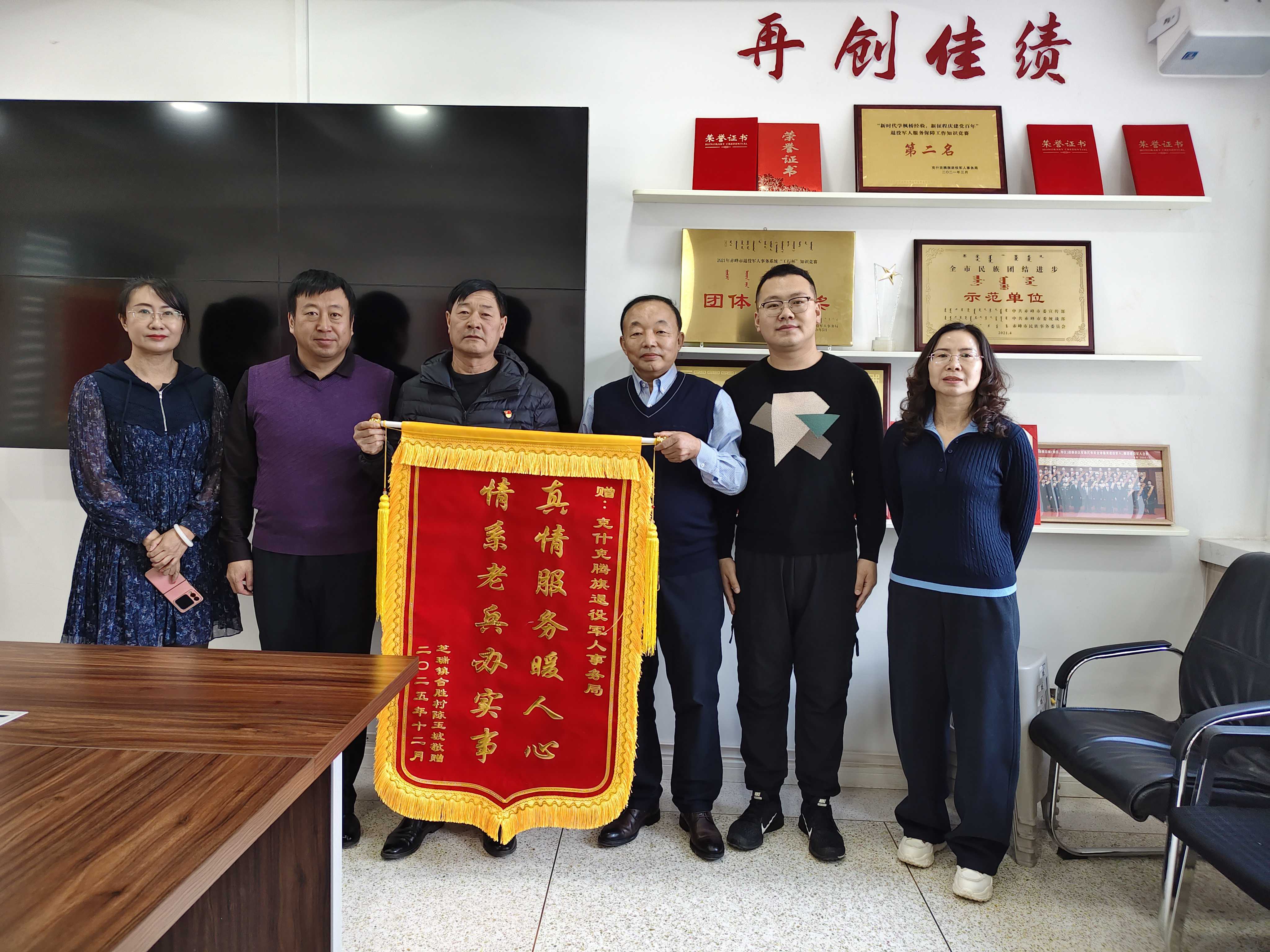 近日,一面印着“真情服务暖人心,情系老兵办实事”的锦旗,由芝瑞镇副镇长张一帅、合胜村书记郭明、镇退役军人服务站工作人员籍文杰代为送至我旗退役军人事务局,这是我旗重点优抚对象陈玉坡委托三人送来的一份特殊谢意。