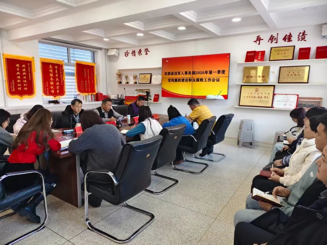 1月21日,克旗退役军人事务局召开2026年第一季度党风廉政建设和反腐败工作暨警示教育会议,旗纪委监委派驻旗文化旅游体育局纪检监察组组长宋丽军莅临会议,局党组书记、局长乌云通嘎拉嘎主持会议并对新一年党风廉政建设和反腐败工作进行安排部署。